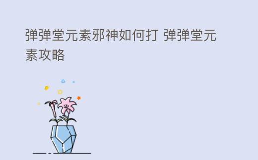 弹弹堂元素邪神如何打 弹弹堂元素攻略