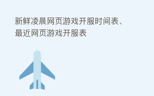 新鲜凌晨网页游戏开服时间表、最近网页游戏开服表