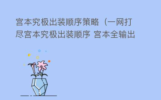 宫本究极出装顺序策略(一网打尽宫本究极出装顺序 宫本全输出装