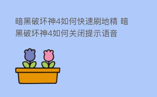 暗黑破坏神4如何快速刷地精 暗黑破坏神4如何关闭提示语音