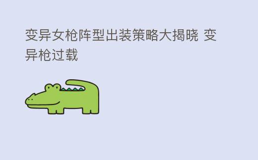 变异女枪阵型出装策略大揭晓 变异枪过载