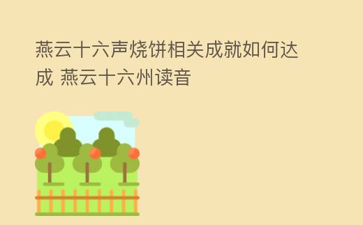 燕云十六声烧饼相关成就如何达成 燕云十六州读音