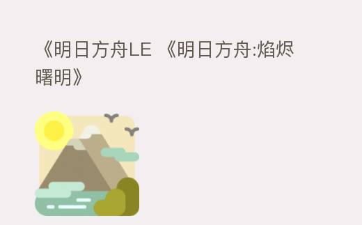 《明日方舟LE 《明日方舟:焰烬曙明》