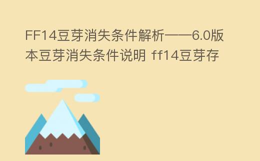 这篇文章小编将从过期时刻、任务完成、未达成指定目标、时刻限制、阶段性消失、豆芽交换、副本相关、豆芽运用、日程表、官方公告、事件触发、物品运用、限量活动主题、奖励领取等多个方面说明了6.0版本FF14豆芽消失的条件。希望这篇文章小编将的解析能够帮助玩家们更好地领会和应对这个难题,让大家在游戏中获取更多的趣味。