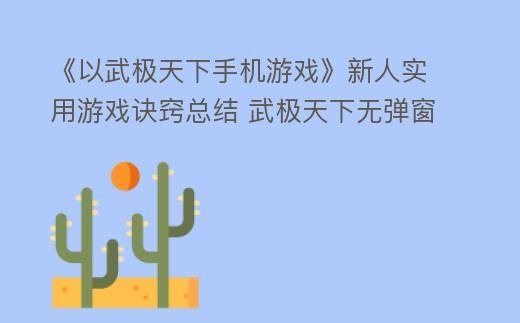 《以武极天下手机游戏新人实用游戏诀窍拓展资料》