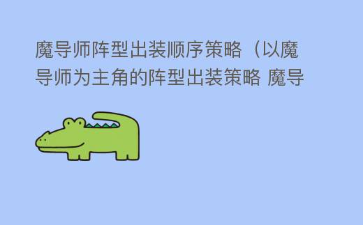 魔导师阵型出装顺序策略(以魔导师为主角的阵型出装策略 魔导师攻略