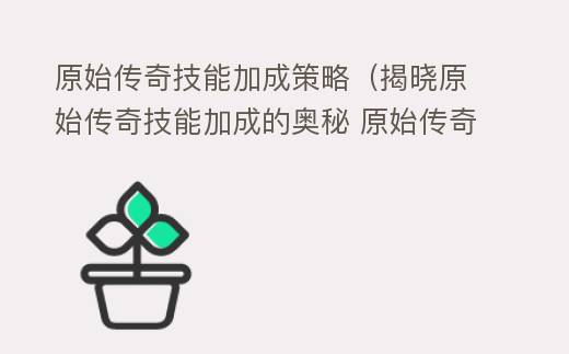 原始传奇技能加成策略(揭晓原始传奇技能加成的奥秘 原始传奇技能加点攻略